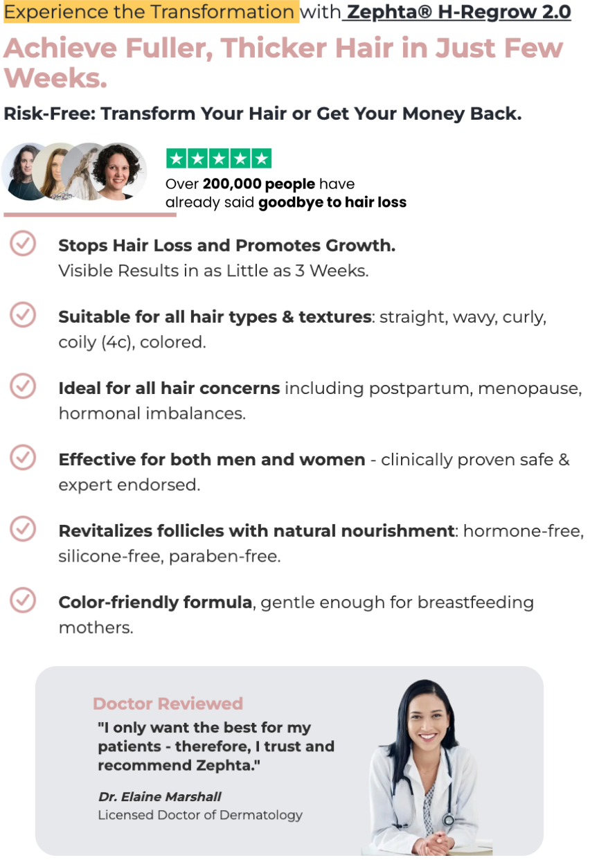 Hey...This little product is fantastico! Just started using Zephta® H-Regrow 2.0 and I'm already noticing a difference! My hair feels thicker and healthier. 🌟Hopefully it will help you too.